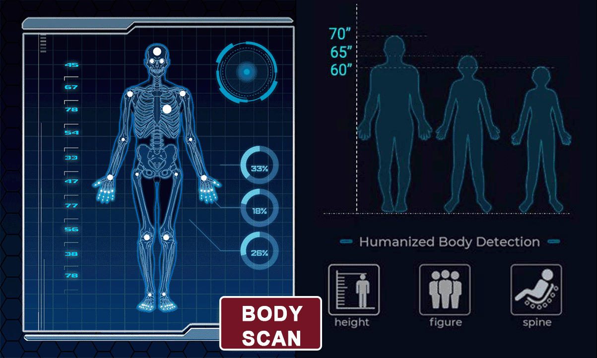 Body scanning technology will detect your shoulders and height to ensure the massage rollers are hitting all your specific pressure points, adjusting the position of the rollers accordingly. All for a personalized massage.